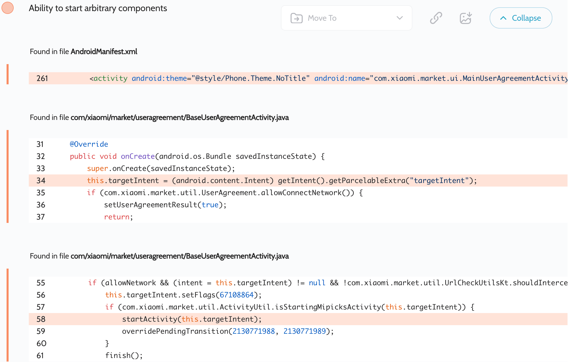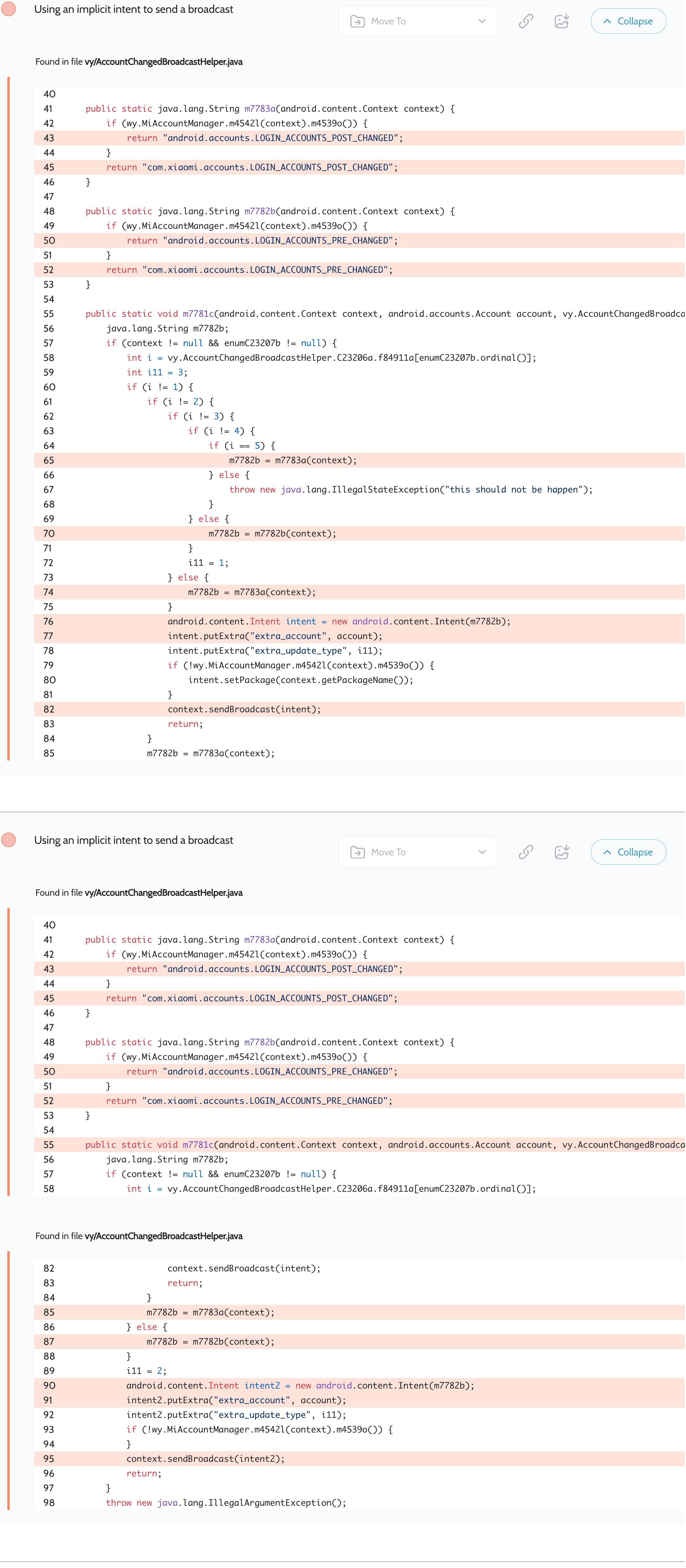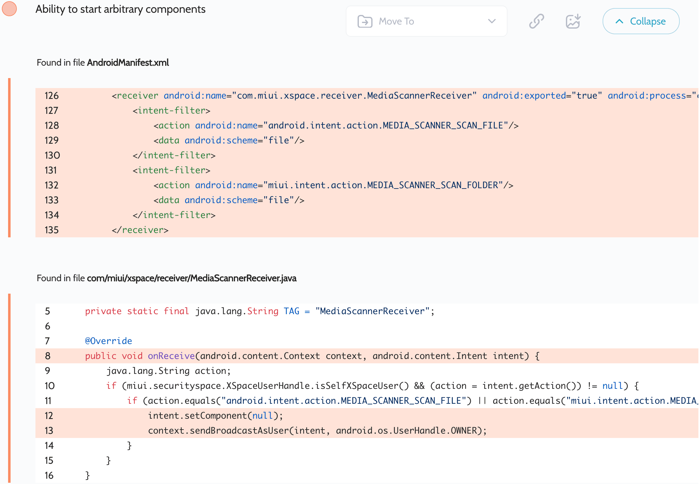 Oversecured found and resolved significant mobile security vulnerabilities in Xiaomi devices. Our team discovered 20 dangerous vulnerabilities across various applications and system components that pose a threat to all Xiaomi users. The vulnerabilities in Xiaomi led to access to arbitrary activities, receivers and services with system privileges, theft of arbitrary files with system privileges, disclosure of phone, settings and Xiaomi account data, and other vulnerabilities.