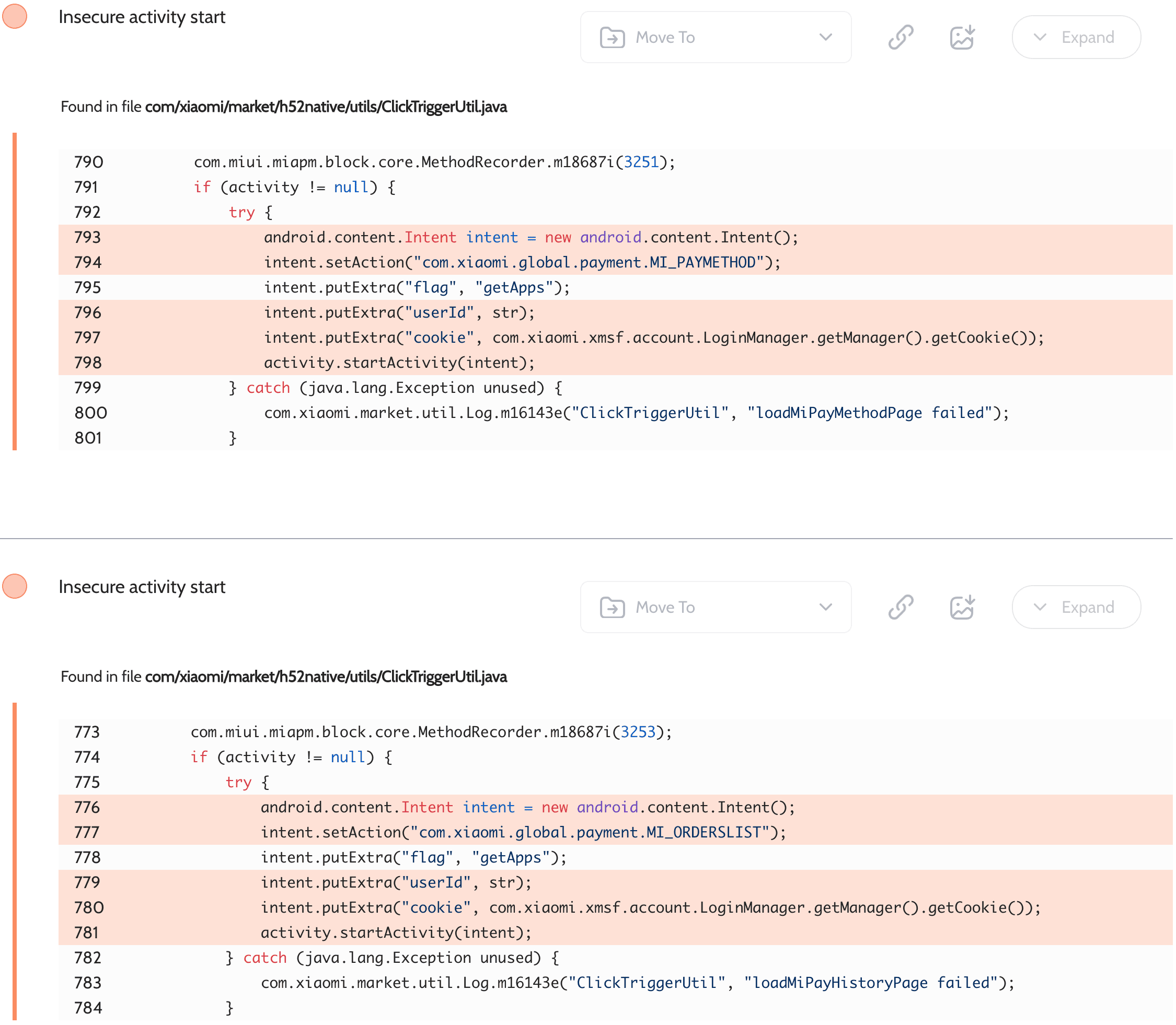 Oversecured scan report for the Xiaomi Cloud app (com.xiaomi.mipicks) contained the following vulnerability: