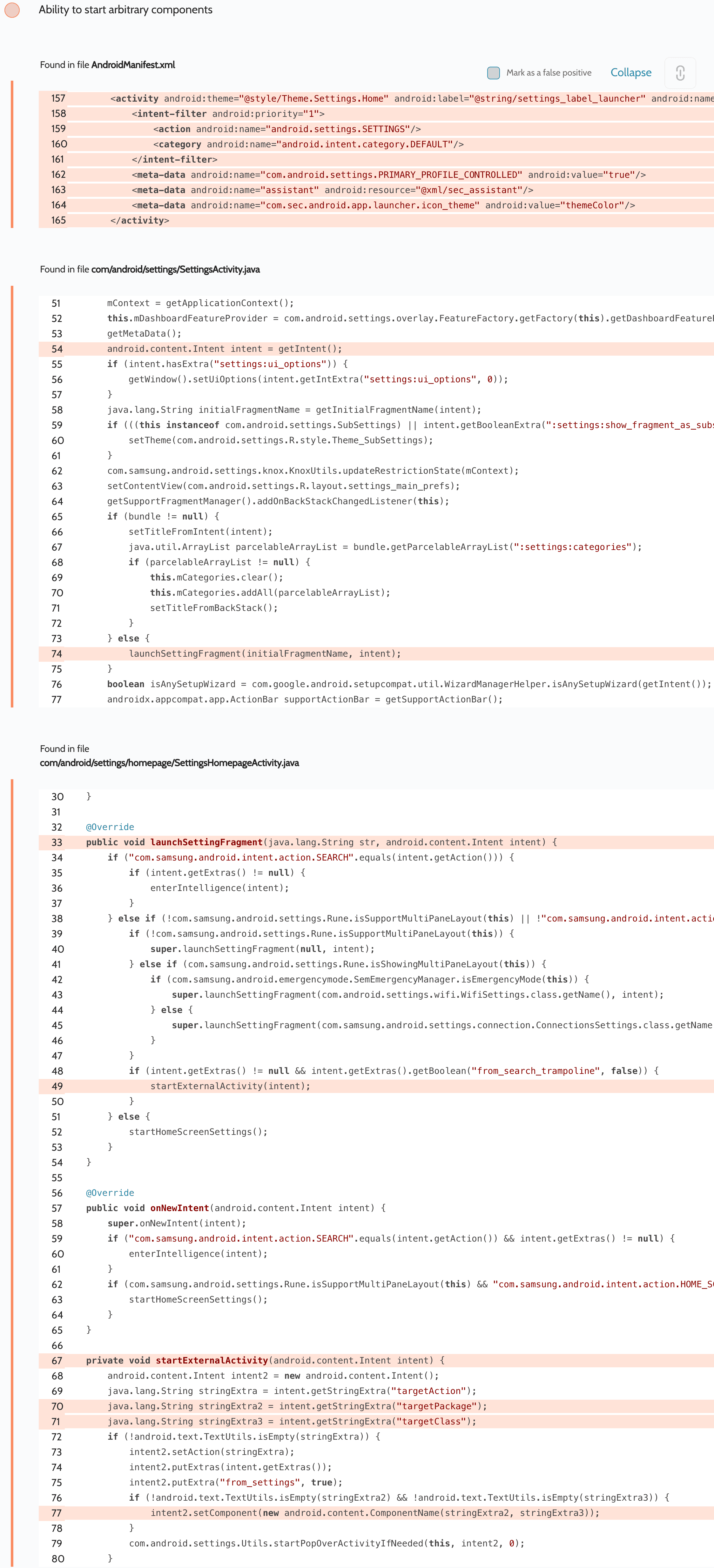 And so it was time for us to fix the problem, and ensure our checks covered absolutely all system APIs! As a result, the Oversecured Android vulnerability scanner now supports two environments: Google and Samsung. In the process, we have discovered tens of Samsung vulnerabilities and a few on Google.