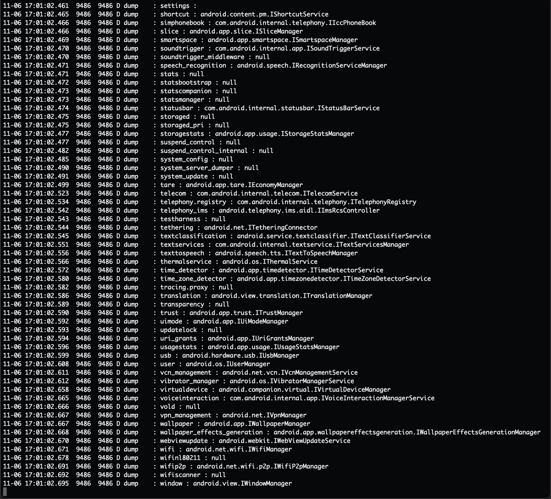 In nearly every case, the interface descriptor is an AIDL interface whose name is the same as that of a Java class. For example, the android.content.IClipboard interface corresponds to android/content/IClipboard.java when decompiled, or android/content/IClipboard.aidl in its original form.