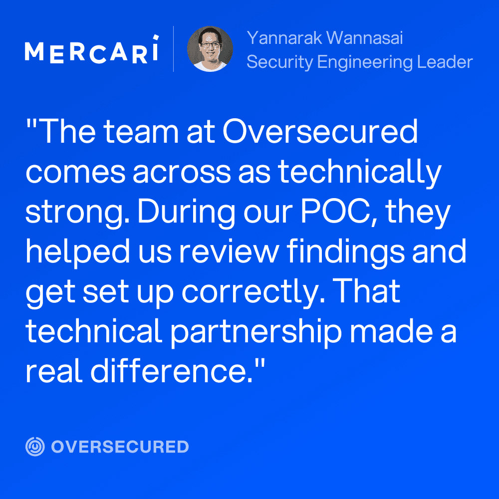 When evaluating Oversecured, Mercari’s Product Security team was immediately impressed by the technical depth of the team. Unlike other vendors who led with sales pitches, Oversecured demonstrated genuine technical expertise. During the proof-of-concept (POC) period, the Oversecured team actively helped review findings and ensured proper setup.