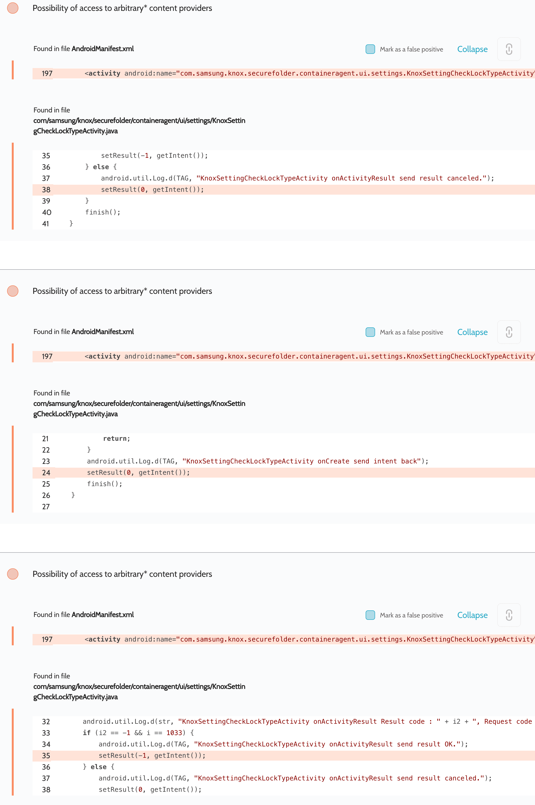 Therefore, in the Samsung app, this check could be bypassed by setting the value com.samsung.knox.container.requestId: