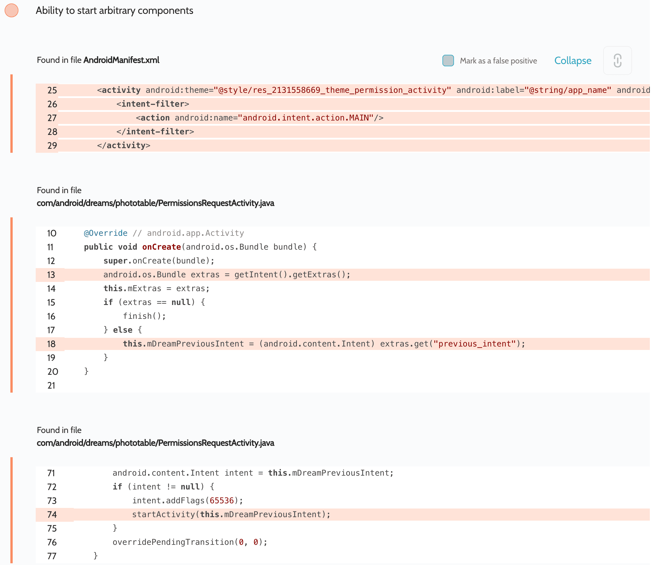 In PhotoTable, we found intent redirection, which allowed access to content providers to be intercepted:
