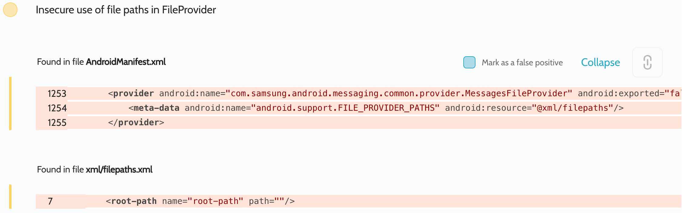 File theft in Samsung Messages After scanning the Samsung Messages app, we received an alert about the possibility for theft of arbitrary files: