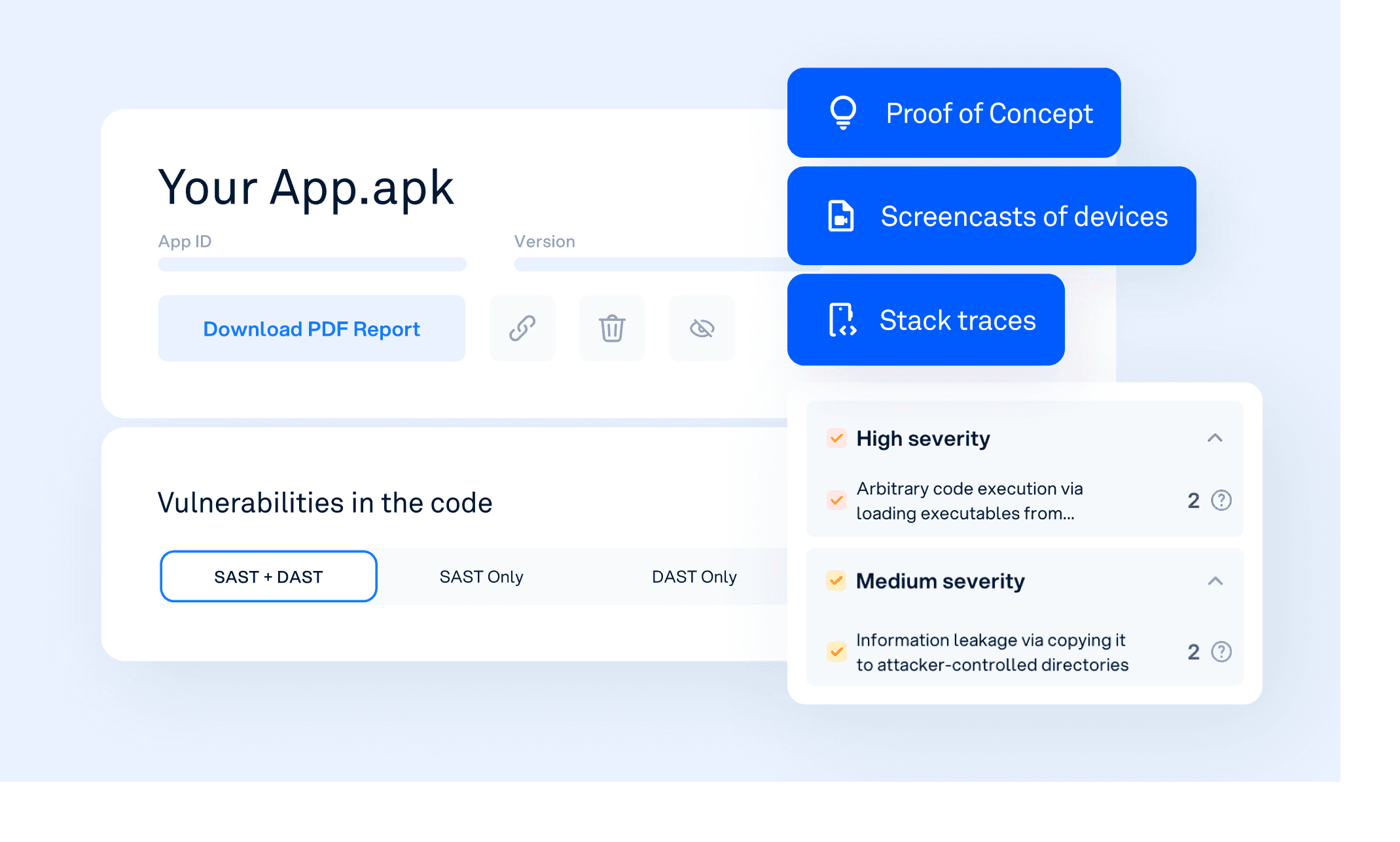 In addition, Oversecured DAST does not operate in isolation. It actively uses SAST results to guide dynamic testing, focusing runtime validation on code paths and configurations that are known to be risky. This combination of SAST-informed DAST and proof-based exploit validation is a major departure from traditional DAST tools, which typically perform generic checks without context. The result is a more precise, efficient, and trustworthy form of mobile application security testing.